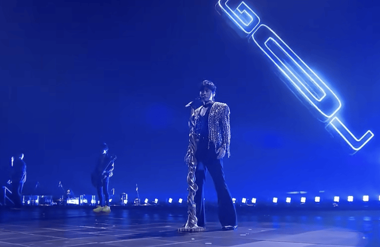 影片中HUNTR/X女团在舞台上表演《Golden》