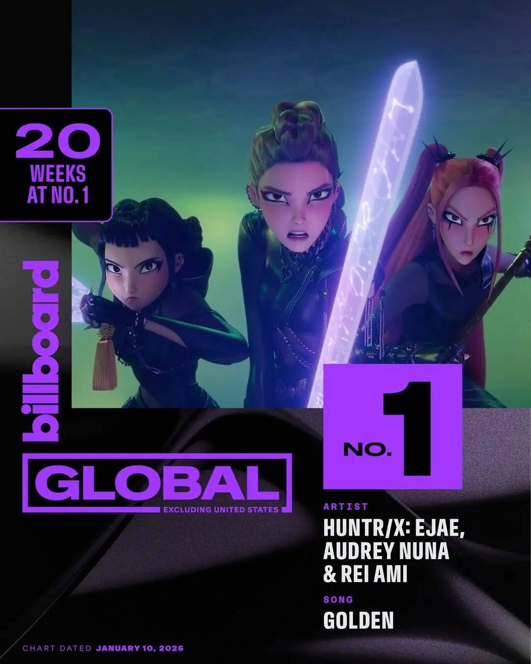 电影原声带多首单曲进入Billboard前十,主题曲《Golden》更是连续20周排名第一。在国内同样火爆,不仅长期登上内地及港台地区Apple Music榜单,成为全网爆火的短视频BGM。