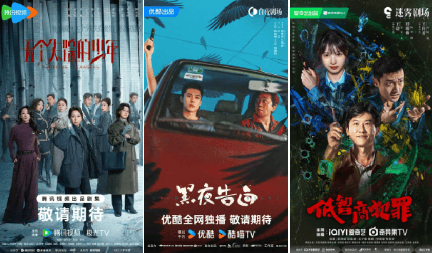 优酷这边主要包括大导曹盾的犯罪剧新作《城墙之上》、潘粤明和王鹤棣搭档的“双男主”刑侦剧《黑夜告白》、以中国台北为拍摄地的《沉默的审判》等。而改编自紫金陈小说《低智商犯罪》的《擒贼记》、融入了家庭关系与职业责任冲突的《昨夜将至》、以当代女性视角展开叙事的《回来的她们》等则是爱奇艺的待播悬疑项目。