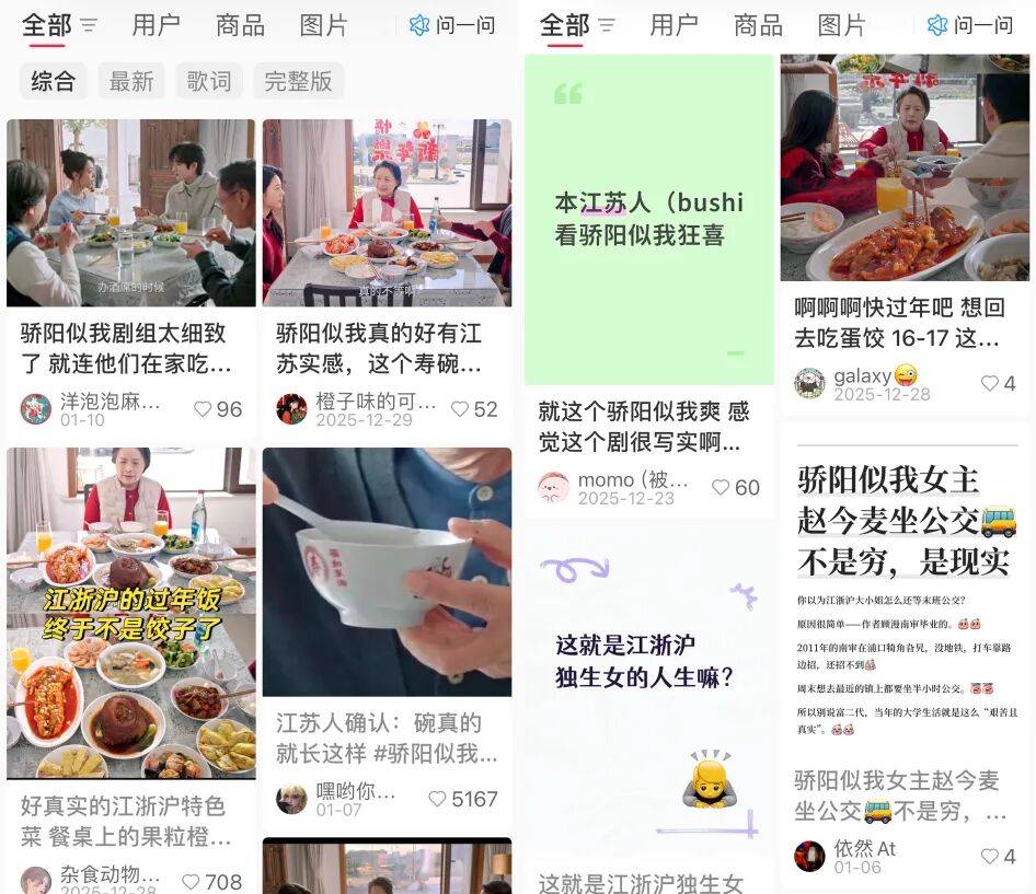 如此,不仅剧中的人物更加落地,观众也可结合现实进一步理解角色的言行逻辑,产生更强烈的共鸣与共情。包括具体的影像呈现中,《骄阳似我》也从衣食住行等细节出发,将地域与年代特色做足,连桌上菜色都经得起细扒,得到江浙沪网友的盖章认可。