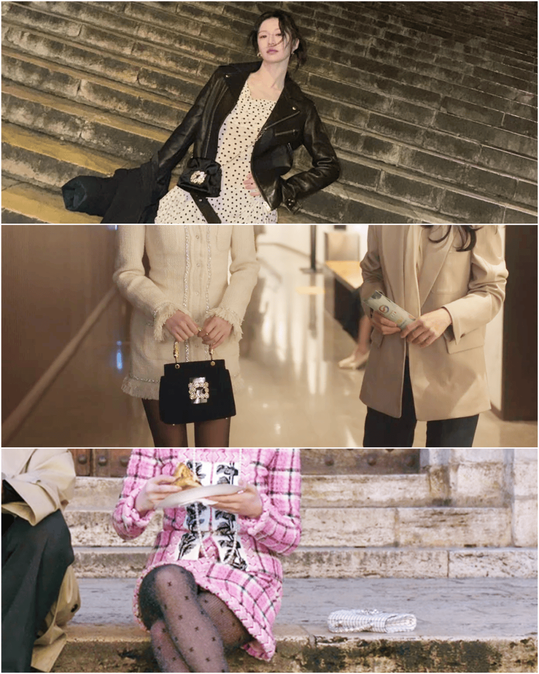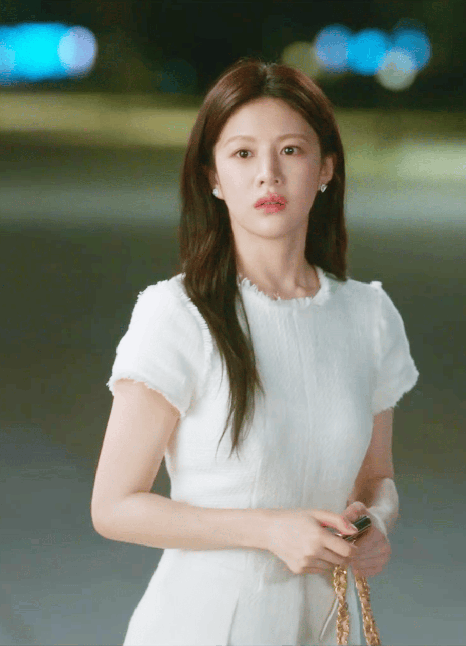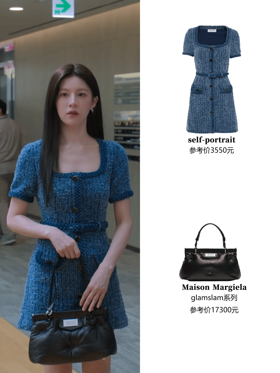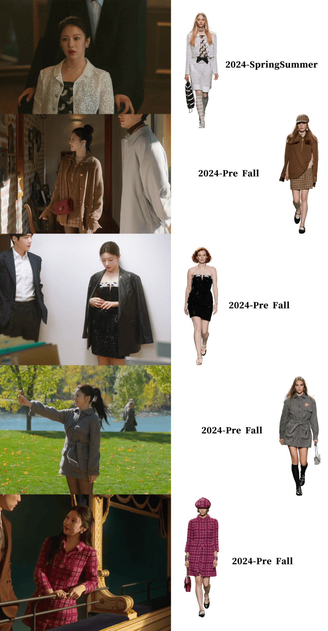 女主在剧中穿了好多粗花呢单品,一方面是韩剧造型师很喜欢给比较贵气的人设这样穿,另一方面高允真本人也和Chanel有合作关系。