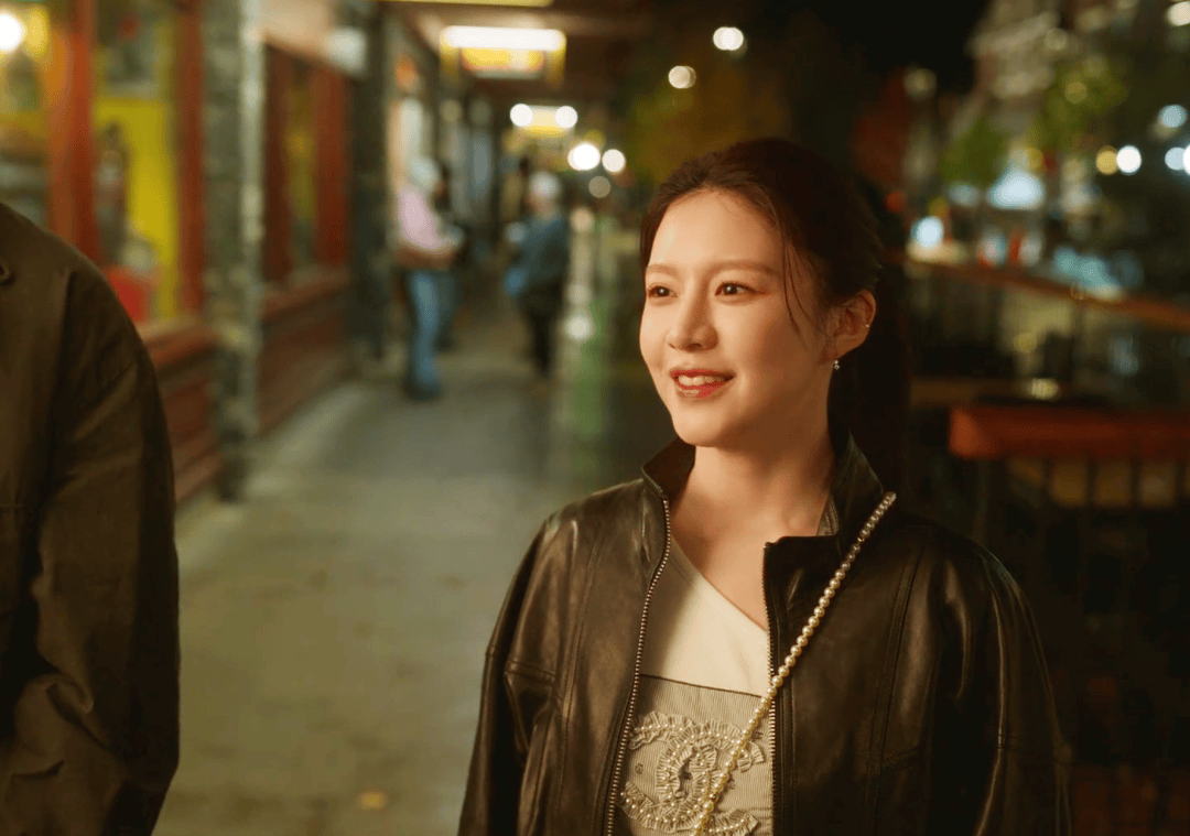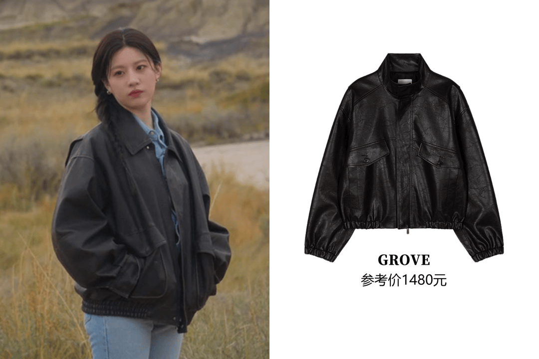 她在剧中的其他皮衣造型,也都遵循“一酷一甜”的反差法则。