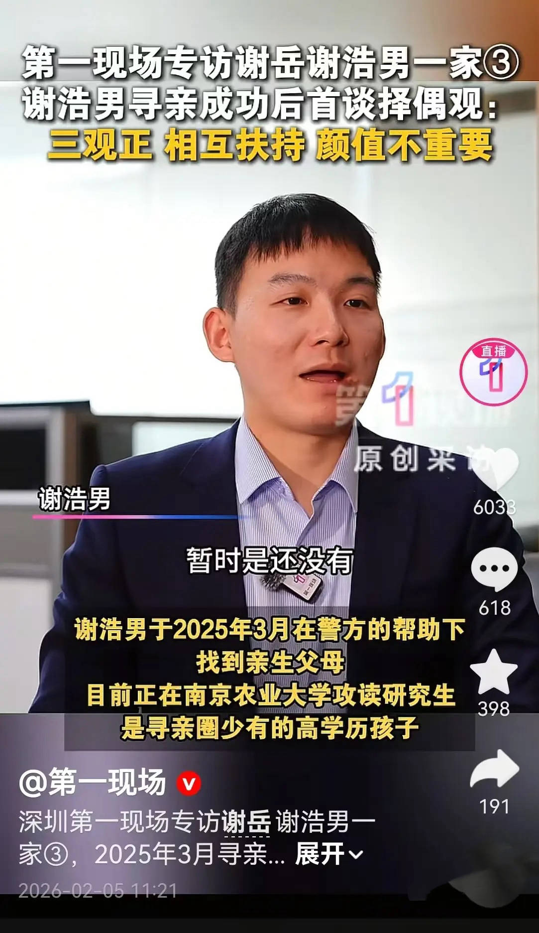在最新的一期访谈节目中,谢浩男和父亲谢岳回答了很多敏感话题。比如对养父母的态度、以及谢岳承诺的奔驰车,养父母对他好不好都做了清晰回答。