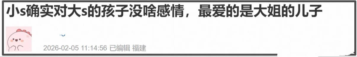 可现在大S走了,小S连看一眼俩孩子都不愿意,更别提替大S教育照顾两个孩子了。她巴不得离俩孩子远远地,井水不犯河水。