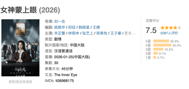 在当下的一众律政剧当中,《女神蒙上眼》的风格创新和品质追求是显而易见的。播出以来收视率持续夺冠,以开分7.5分的成绩成为豆瓣近年来律政题材罕见的高分,这些正是梁振华及其青春你好团队所有付出的回馈。