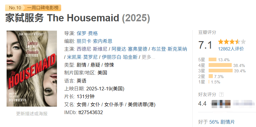 同时,一周豆瓣口碑榜也是可以了解下的。我们一起来看,这一周,又有哪些新的影片上榜吧。