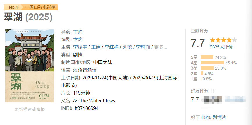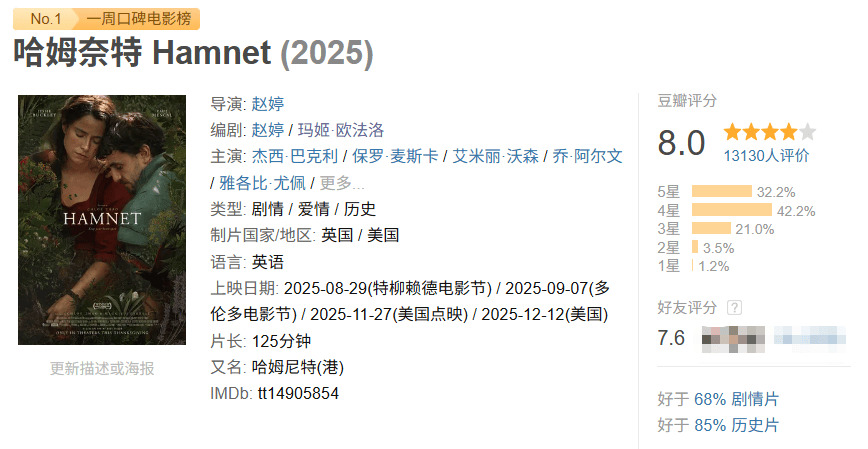 算近期院线电影里评价很好的一部了,一个小艺术片,当然,票房确实是不太行,即便评分不错。