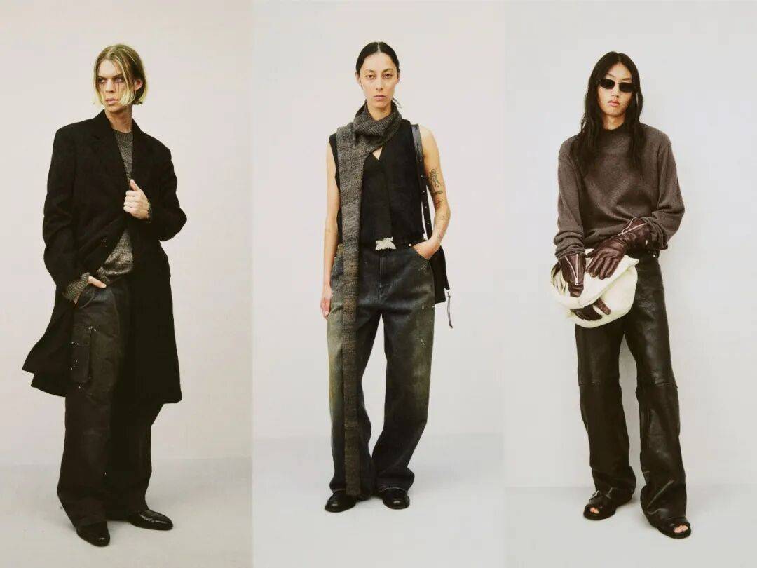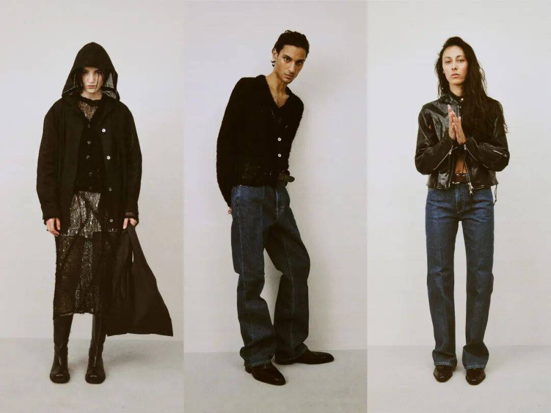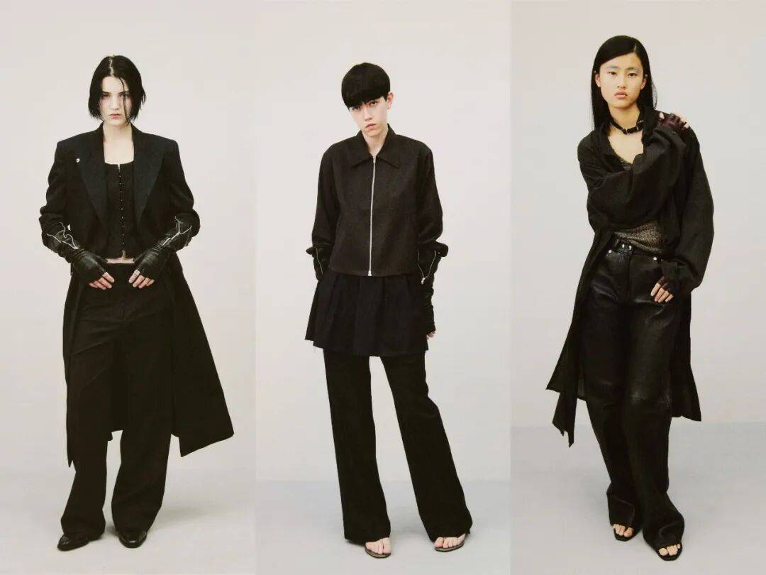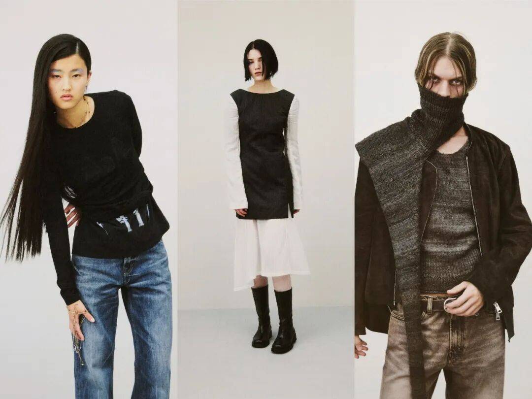 1. 善用同色不同肌理:秀场多种黑色调是核心,搭配时可选空灵黑轻薄针织+深渊黑重磅牛仔,靠水洗、打蜡、做旧的肌理差异,让同色系穿搭不单调。