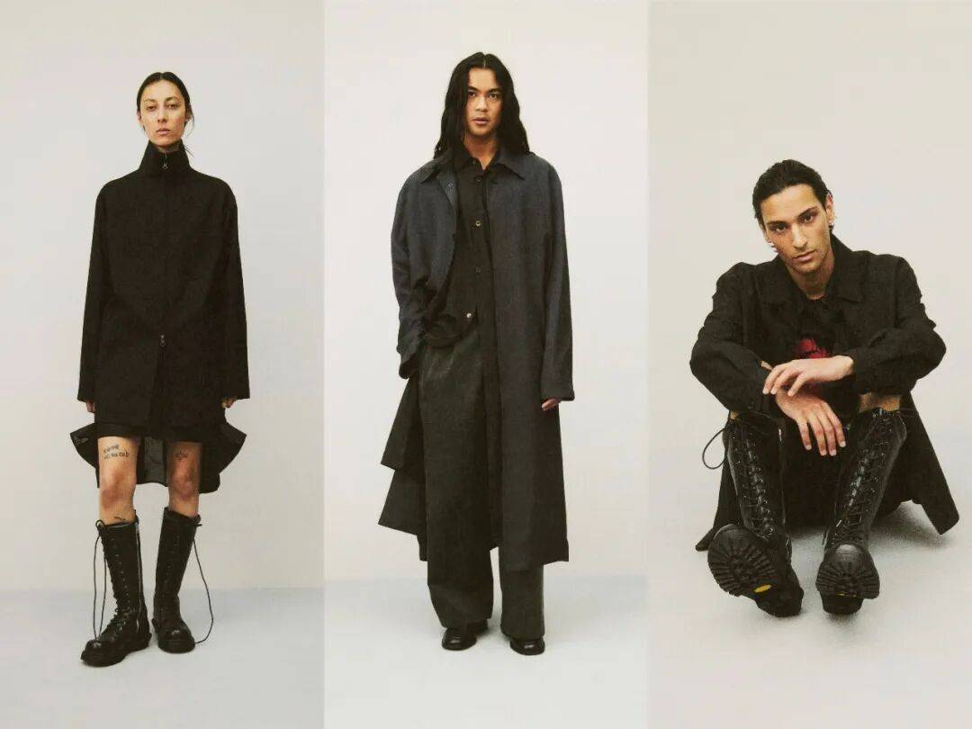 从日常通勤到轻社交场景,系列穿搭具备极强的适配性:通勤时选择黑色系基础款叠穿,用蕾丝军装外套替代传统西装;休闲出游可搭配超大号短裤与落肩衬衫,脚踩德训鞋;轻社交场合则以燕尾服飞行员夹克搭配彩虹针织内搭,平衡正式与个性。整体而言,该系列的穿搭哲学在于「让平凡单品焕发独特质感」,通过廓形比例的精准把控、材质元素的跨界融合,打造出低调却辨识度极高的当代穿搭风格。