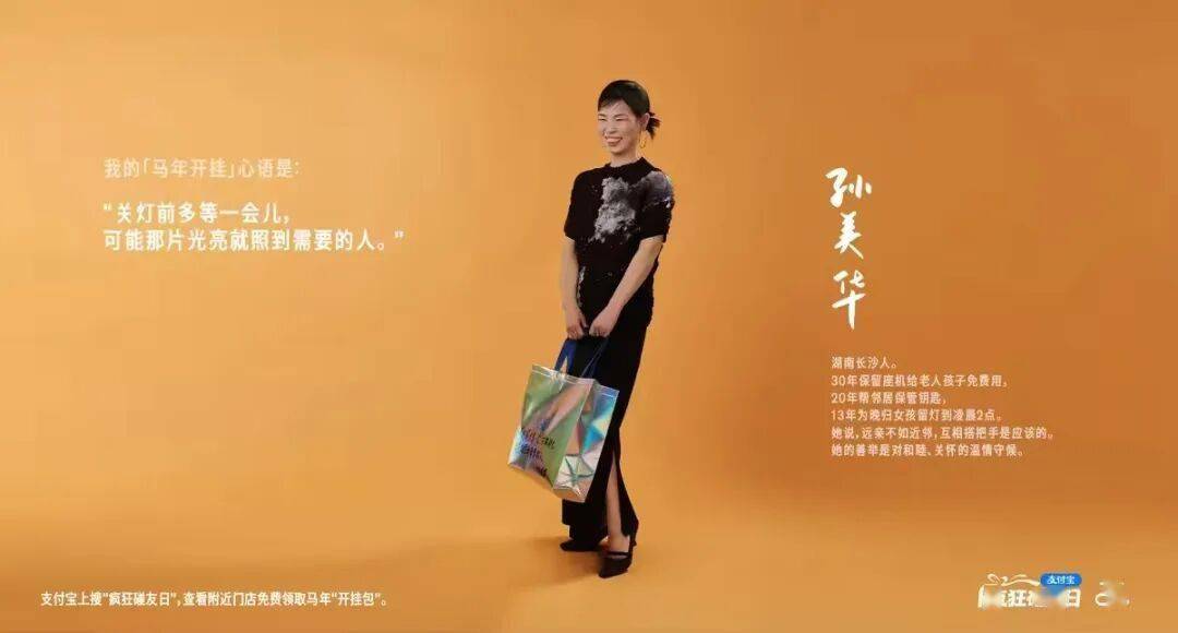 在这个流量为王的时代,这五位平凡人能被支付宝选中、登上城市大屏,非常罕见却又如此合理——他们是人海里的我们,在庸常中坚守热爱,在平凡里闪闪发光。