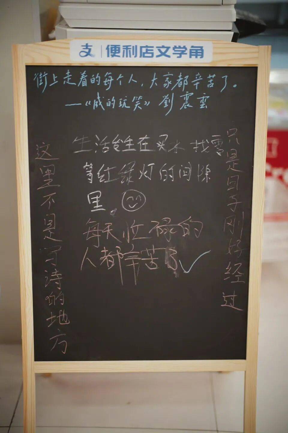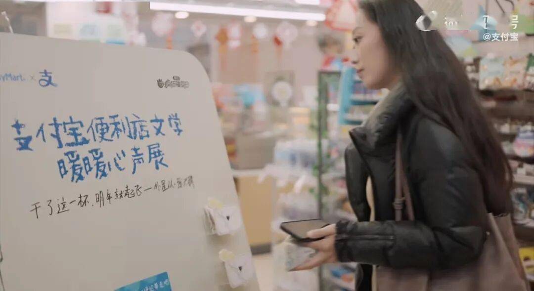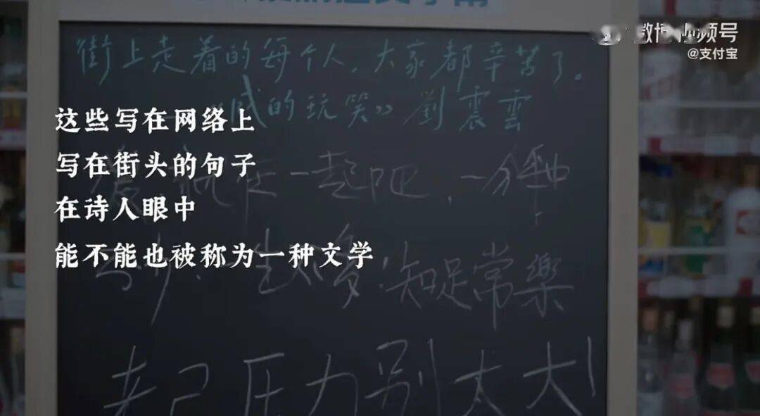 寥寥几笔,却观遍众生相。便利店的文学角,就这样越来越多,遍地生花。在社会公共空间里,支付宝为普通人的表达腾出了一块空地。