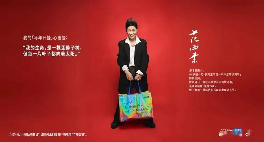 2026农历马年将至,支付宝把这些治愈力量装进了“马年开挂包”,邀请刘小样、范雨素手写文字,印在随身袋上,让她们的生活哲学和人生力量能够感染更多人。