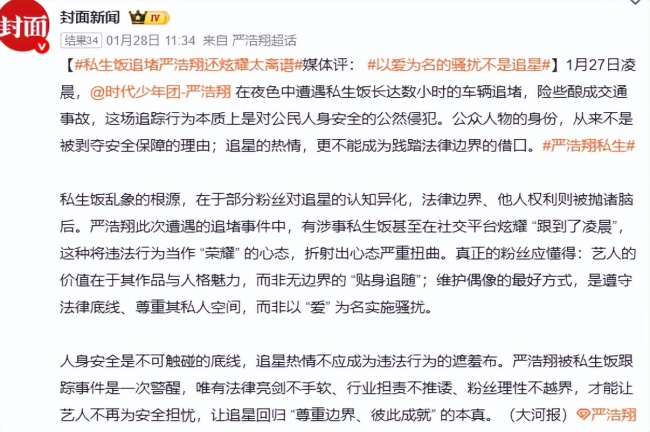 2026年1月27日,就在此次演出的半个月前,时代少年团成员严浩翔被在夜色中遭遇私生饭长达数小时的追车,险些酿成交通事故。