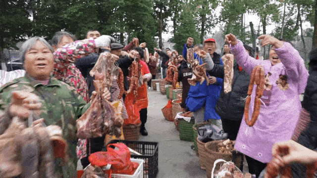 四川广安的人们在寒风中自发排队熏年猪,烟火缭绕间熏出的是年味,更是对团圆的期盼。