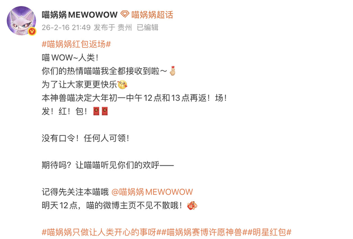 喵娲娲新年锦鲤名单公布,网友许愿求加入