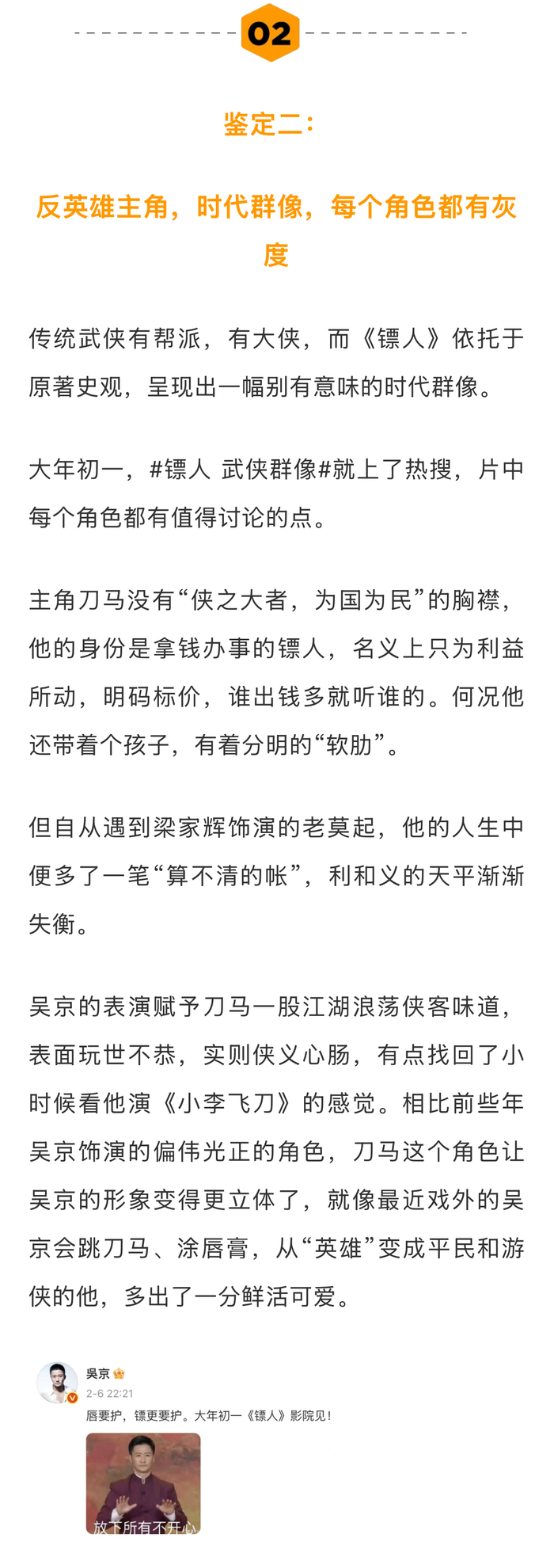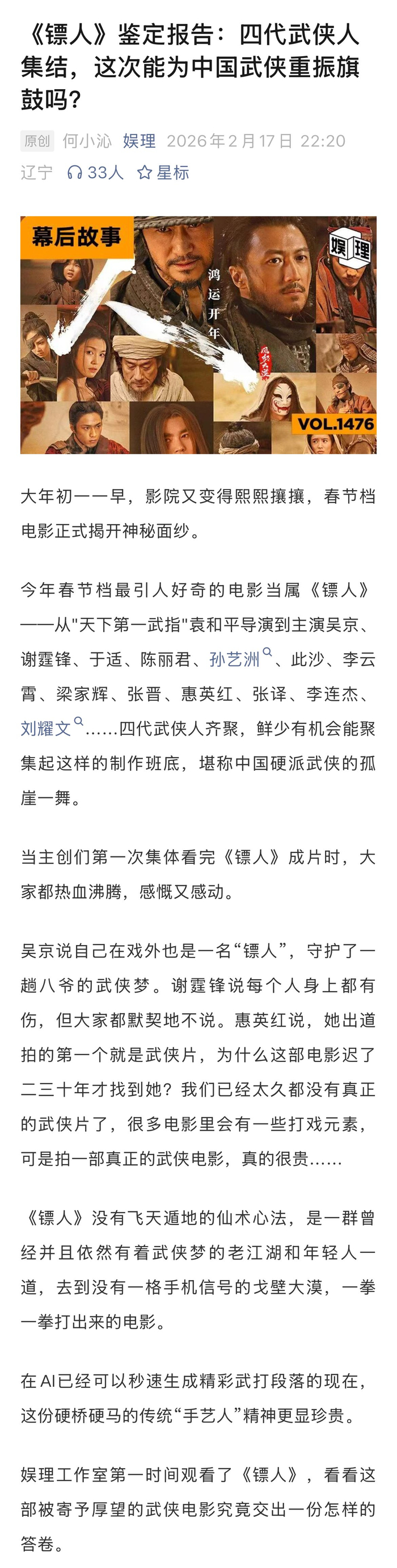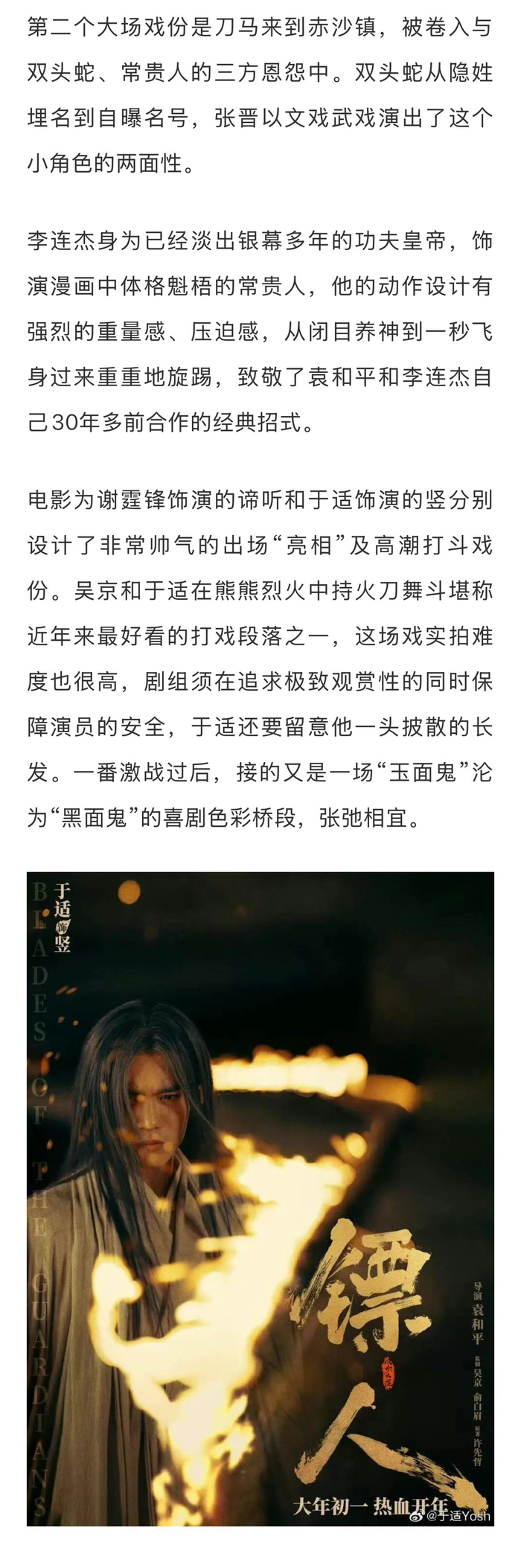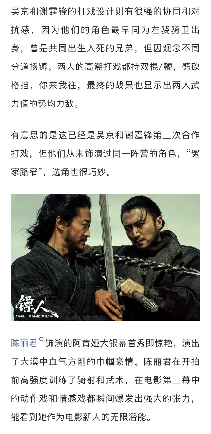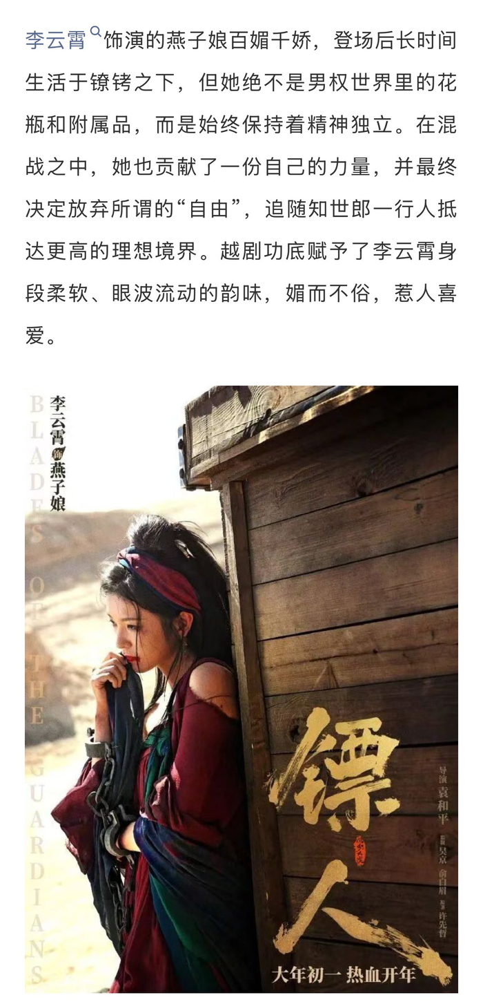 #镖人镜头里的女性生命力##镖人四代武侠人的含金量#"天下第一武指"袁和平执导,吴京、谢霆锋、于适、陈丽君、孙艺洲、此沙、李云霄、梁家辉、张晋、惠英红、张译、李连杰、刘耀文……四代武侠人齐聚的《镖人:风起大漠》已于大年初一,正式上映。