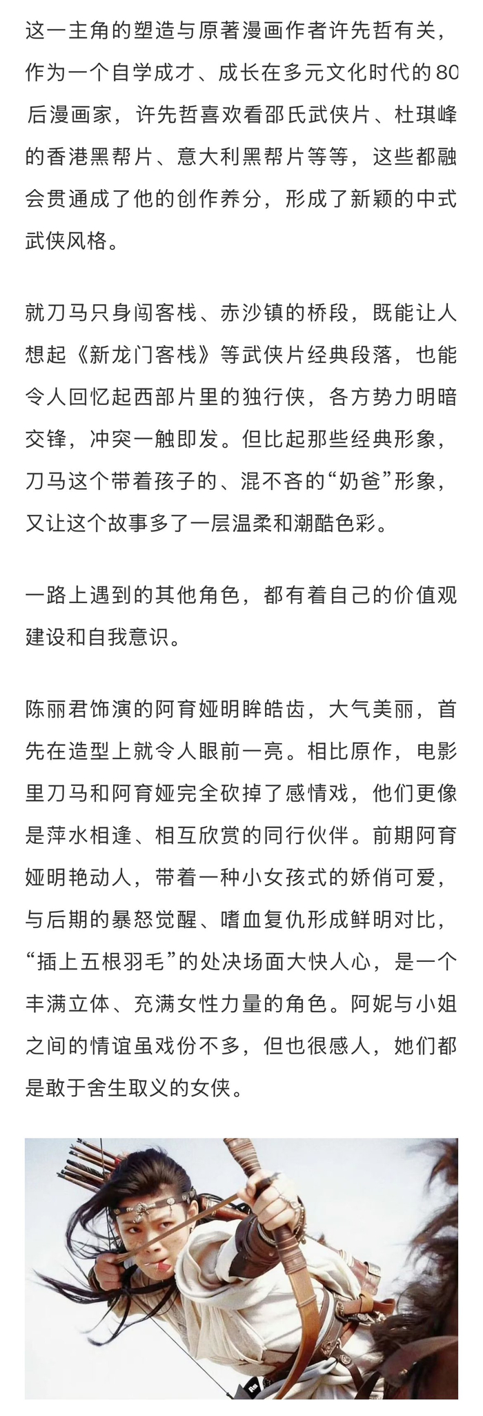 新浪娱乐@娱理 工作室第一时间观看了《镖人:风起大漠》,看看这部被寄予厚望的武侠电影究竟交出一份怎样的答卷:电影以主角刀马为轴,串起了纷乱众生相,角色虽多,但没有标签化、脸谱化对待,每个人物的选择都有自己的道理,也把“何为对,何为错”的问题留给观众自己思考…#娱理独家#↓